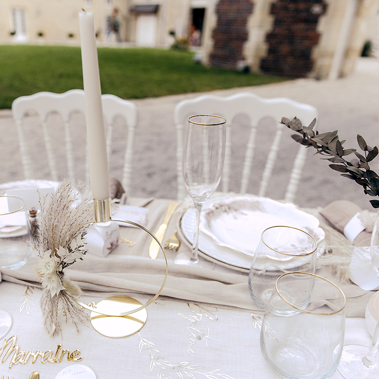 Elégant et design, ce chandelier bougeoir anneau doré en métal et ses fleurs séchées à petit prix créera une ambiance classe et épurée pour vos décorations mariage de table. Ce chandelier en métal or et fleurs séchées pour bougie flambeau sublimera vos décorations de table. Idéal pour vos thèmes chic et doré, champêtre, bohème, terracotta...