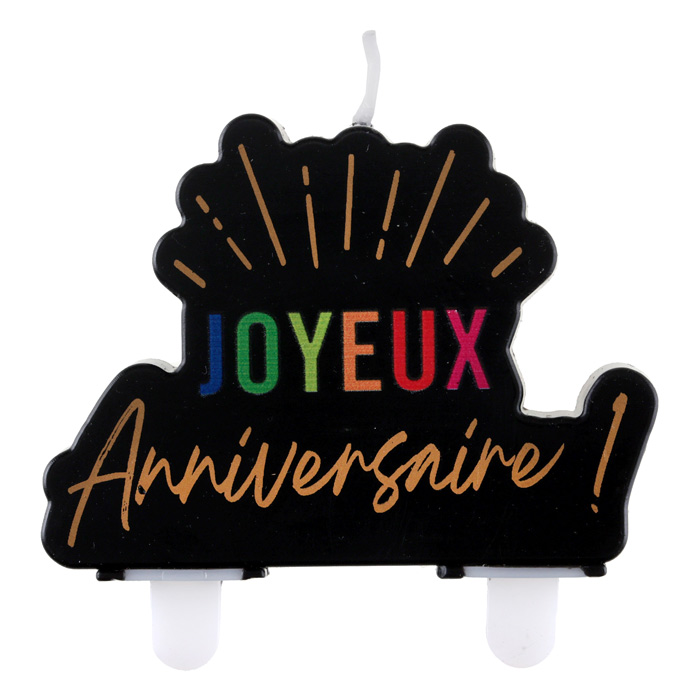 Bougie Gateau Joyeux Anniversaire Noir Multicolore 2.50 € Previous Next Disponibilité En stock Expédié sous 24h Délai livraison 48h Qualité produit Avis clients Aucun avis Pour donner votre avis sur ce produit, vous devez dejà avoir commandé ce produit. Les informations sur le recueil de nos avis sont disponibles : ici. Pour vérification, veuillez saisir votre n° de commande et votre code postal : N° commande : Code Postal : Note de 1 à 5 : 5 étoiles 4 étoiles 3 étoiles 2 étoiles 1 étoile Tapez ici votre commentaire sur ce produit. Valider Quantité 1 2 3 4 5 6 7 8 9 10 11 12 13 14 15 16 17 18 19 20 21 22 23 24 25 26 27 28 29 30 31 32 33 34 35 36 37 38 39 40 41 42 43 44 45 46 47 48 49 50 51 52 53 54 55 56 57 58 59 60 61 62 63 64 65 66 67 68 69 70 71 72 73 74 75 76 77 78 79 80 81 82 83 84 85 86 87 88 89 90 91 92 93 94 95 96 97 98 99 100 101 102 103 104 105 106 107 108 109 110 111 112 113 114 115 116 117 118 119 120 121 122 123 124 125 126 127 128 129 130 131 132 133 134 135 136 137 138 139 140 141 142 143 144 145 146 147 148 149 150 151 152 153 154 155 156 157 158 159 160 161 162 163 164 165 166 167 168 169 170 171 172 173 174 175 176 177 178 179 180 181 182 183 184 185 186 187 188 189 190 191 192 193 194 195 196 197 198 199 200 Commander - Ref : 9021-11 - Bougie gâteau anniversaire. - Thème multicolore festicolor noir. - Dimensions : 7 cm large x 5 cm haut (sans les pics). - Paraffine et base plastique. - Multicolore - Inscription " Joyeux Anniversaire" multicolore et ocre dorée. Indispensable pour votre gâteau anniversaire, cette bougie gâteau Joyeux Anniversaire noir et multicolore est à un tout petit prix pour donner une touche colorée et joyeuse pour le dessert ! Ajoutez y des bougies chiffres en complément pour assurer une fête anniversaire adulte ou anniversaire enfant réussie !