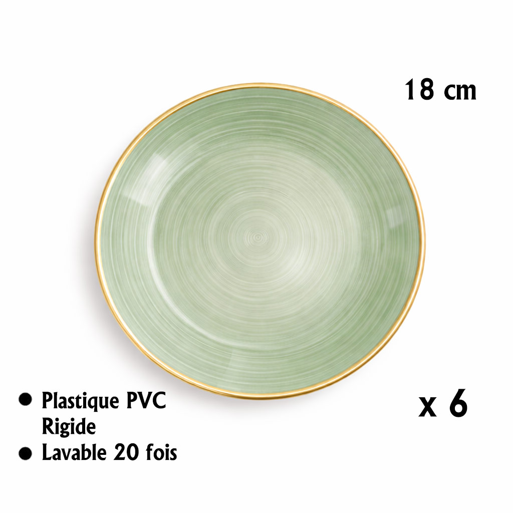 Combo 12 Assiettes Luxe Réutilisables Vert Sauge Bordure Dorée 9.50 € Previous Next Disponibilité En stock Expédié sous 24h Délai livraison 48h Qualité produit Avis clients Aucun avis Pour donner votre avis sur ce produit, vous devez dejà avoir commandé ce produit. Les informations sur le recueil de nos avis sont disponibles : ici. Pour vérification, veuillez saisir votre n° de commande et votre code postal : N° commande : Code Postal : Note de 1 à 5 : 5 étoiles 4 étoiles 3 étoiles 2 étoiles 1 étoile Tapez ici votre commentaire sur ce produit. Valider Couleur choisie Vert Sauge Doré Quantité 1 2 3 4 5 6 7 8 9 10 11 12 13 14 15 16 17 18 19 20 21 22 23 24 25 26 27 28 29 30 31 32 33 34 35 36 37 38 39 40 41 42 43 44 45 46 47 48 49 50 51 52 53 54 55 56 57 58 59 60 61 62 63 64 65 66 67 68 69 70 71 72 73 74 75 76 77 78 79 80 81 82 83 84 85 86 87 88 89 90 91 92 93 94 95 96 97 98 99 100 101 102 103 104 105 106 107 108 109 110 111 112 113 114 115 116 117 118 119 120 121 122 123 124 125 126 127 128 129 130 131 132 133 134 135 136 137 138 139 140 141 142 143 144 145 146 147 148 149 150 151 152 153 154 155 156 157 158 159 160 161 162 163 164 165 166 167 168 169 170 171 172 173 174 175 176 177 178 179 180 181 182 183 184 185 186 187 188 189 190 191 192 193 194 195 196 197 198 199 200 Commander - Ref : 3405SAU - Lot de 6 grandes assiettes 26cm + 6 petites assiettes 18cm. - Soit 12 assiettes assorties au total. - Ps injecté brillant TRES rigide de belle qualité. - Superbe liseré bordure dorée discrète brillante. - Très stables et très joli design très sobre et classe. - Assiettes lavables et réutilisables : peuvent resservir ! - Résistent à plus de 20 cycles de lavage au lave-vaisselle à 50 degrés. - S'empilent, faciles à ranger. De qualité très luxueuse, cet ensemble de 12 assiettes réutilisables luxe Vert sauge avec leur bordure très classe dorée ont un design très classe et élégant. Ces assiettes pvc bordure dorée sont très rigides et seront du plus bel effet sur vos tables de mariage. Nos assiettes Combo Luxes sont réutilisables et résistent à plus de 20 cycles de lavage au lave vaisselle à 50 degrés !