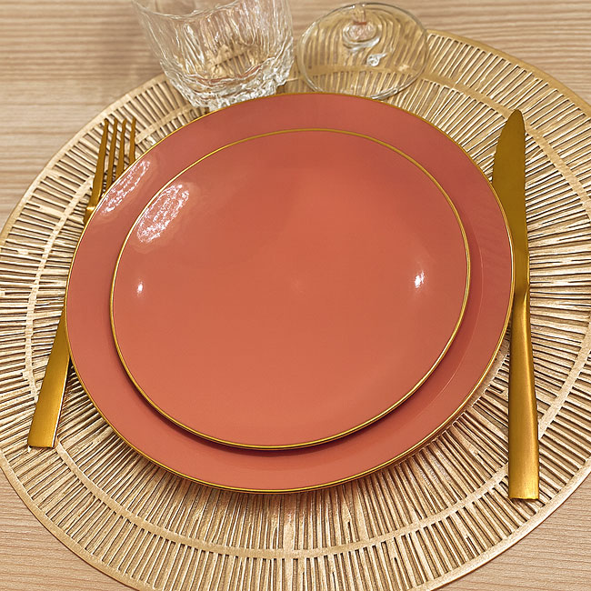 Ménagère 16 Assiettes Réutilisables Terracotta et Doré 9.50 € Previous Next Disponibilité En stock Expédié sous 24h Délai livraison 48h Qualité produit Avis clients Aucun avis Pour donner votre avis sur ce produit, vous devez dejà avoir commandé ce produit. Les informations sur le recueil de nos avis sont disponibles : ici. Pour vérification, veuillez saisir votre n° de commande et votre code postal : N° commande : Code Postal : Note de 1 à 5 : 5 étoiles 4 étoiles 3 étoiles 2 étoiles 1 étoile Tapez ici votre commentaire sur ce produit. Valider Couleur choisie Terracotta Doré Quantité 1 2 3 4 5 6 7 8 9 10 11 12 13 14 15 16 17 18 19 20 21 22 23 24 25 26 27 28 29 30 31 32 33 34 35 36 37 38 39 40 41 42 43 44 45 46 47 48 49 50 51 52 53 54 55 56 57 58 59 60 61 62 63 64 65 66 67 68 69 70 71 72 73 74 75 76 77 78 79 80 81 82 83 84 85 86 87 88 89 90 91 92 93 94 95 96 97 98 99 100 101 102 103 104 105 106 107 108 109 110 111 112 113 114 115 116 117 118 119 120 121 122 123 124 125 126 127 128 129 130 131 132 133 134 135 136 137 138 139 140 141 142 143 144 145 146 147 148 149 150 151 152 153 154 155 156 157 158 159 160 161 162 163 164 165 166 167 168 169 170 171 172 173 174 175 176 177 178 179 180 181 182 183 184 185 186 187 188 189 190 191 192 193 194 195 196 197 198 199 200 Commander - Ref : 2529TER - Lot de 8 grandes assiettes 23cm + 8 petites assiettes 19cm. - Soit 16 assiettes assorties au total. - Ps injecté brillant TRES rigide de belle qualité. - Intérieur coloris terracotta. - Superbe liseré bordure dorée discrète brillante. - Très stables et très joli design très sobre et classe. - Assiettes lavables et réutilisables : peuvent resservir ! - Résistent à plus de 20 cycles de lavage au lave-vaisselle à 50 degrés. - S'empilent, faciles à ranger. De qualité très luxueuse, cet ensemble de 16 assiettes réutilisable gourmet terracotta avec leur bordure très classe dorée ont un design très chic et élégant. Ces assiettes terracotta pvc bordure dorée sont très rigides et seront du plus bel effet sur vos tables de mariage. Nos assiettes Gourmet terracotta sont réutilisables et résistent à plus de 20 cycles de lavage au lave vaisselle à 50 degrés !
