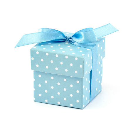 Élégantes et chics, ces petites boites bleu à pois mariage contenants dragées couleur pastel à remplir de dragées, de bonbons ou de petits cadeaux. Livrées avec leurs rubans en satin bleu, elles seront idéales en cadeaux invités pour un mariage comme pour un baptême ! Ces petites boites bleues à pois donneront aussi un look très tendance et doux à votre Candy bar. Produit non apte au contact alimentaire selon les nouvelles normes européennes. Utilisez nos pochons cristal transparents en vente sur notre site en cas d'utilisation en contenant alimentaire.