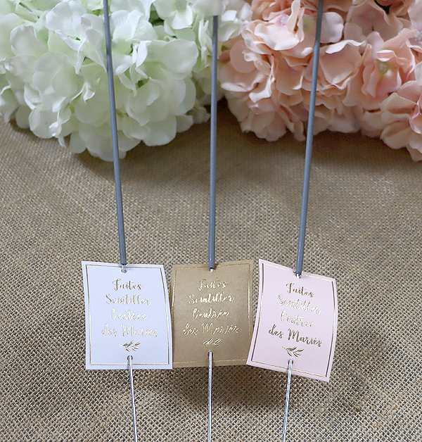 Etiquettes pour Cierges Magiques Kraft Doré x10 2.90 € Utilisation sur Cierges 25 cm Utilisation sur Cierges 45 cm Photo avec Etiquette Rose Etiquette Blanche - Utilisation sur Agitateur Lumineux Previous Next Disponibilité En stock Expédié sous 24h Délais de livraison 48h Qualité produit Avis clients Aucun avis Pour donner votre avis sur ce produit, vous devez dejà avoir commandé ce produit. Les informations sur le recueil de nos avis sont disponibles : ici. Pour vérification, veuillez saisir votre n° de commande et votre code postal : N° commande : Code Postal : Note de 1 à 5 : 5 étoiles 4 étoiles 3 étoiles 2 étoiles 1 étoile Tapez ici votre commentaire sur ce produit. Valider Couleur Kraft - Or Quantité 1 2 3 4 5 6 7 8 9 10 11 12 13 14 15 16 17 18 19 20 21 22 23 24 25 26 27 28 29 30 31 32 33 34 35 36 37 38 39 40 41 42 43 44 45 46 47 48 49 50 51 52 53 54 55 56 57 58 59 60 61 62 63 64 65 66 67 68 69 70 71 72 73 74 75 76 77 78 79 80 81 82 83 84 85 86 87 88 89 90 91 92 93 94 95 96 97 98 99 100 101 102 103 104 105 106 107 108 109 110 111 112 113 114 115 116 117 118 119 120 121 122 123 124 125 126 127 128 129 130 131 132 133 134 135 136 137 138 139 140 141 142 143 144 145 146 147 148 149 150 151 152 153 154 155 156 157 158 159 160 161 162 163 164 165 166 167 168 169 170 171 172 173 174 175 176 177 178 179 180 181 182 183 184 185 186 187 188 189 190 191 192 193 194 195 196 197 198 199 200 Commander - Ref : 78636 - 10 étiquettes pour cierge magique. - Etiquettes carton beige kraft inscription dorée embossée. - Dim : 5 cm de large x 6.5 cm de haut. - Message : Faites Scintiller l'entrée des Mariés. - Peut être utilisé sur bâton lumineux en perforant l'orifice plus large. Nos étiquettes pour cierge magique kraft doré seront idéales pour votre cérémonie de mariage à offrir aux invités pour qu’ils fassent scintiller l’entrée des mariés ! Vous pouvez disposer ensuite vos cierges dans un panier à l'entrée, succès garanti ! Ces étiquettes pour cierges magique peuvent aussi être utilisées pour être mis sur des bâtons lumineux en agrandissant l'orifice grâce à votre perforeuse, quelle superbe idée pour faire briller vos invités dans la soirée !