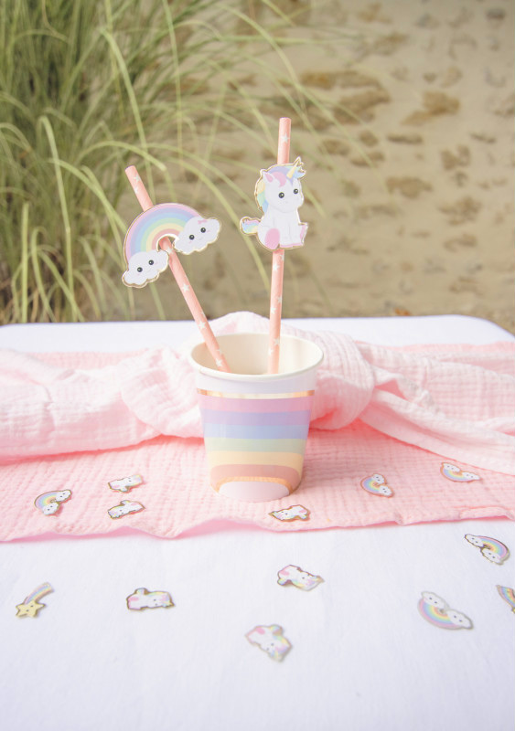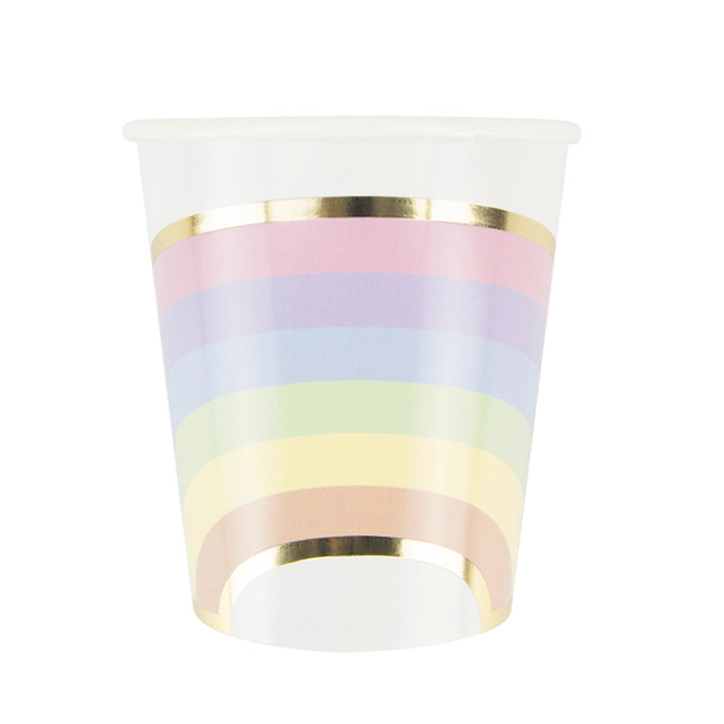 Apportez une touche de magie à la fête avec ces 8 gobelets anniversaire arc en ciel pastel, parfaits pour un anniversaire princesse ou un anniversaire licorne. Leur design doux aux couleurs pastel rappelle l’univers féerique des contes et crée une ambiance enchantée sur votre table. Parfaits pour toutes les boissons, ces gobelets anniversaire arc-en-ciel sont indispensables pour une décoration pleine de rêve, appréciée des petites princesses et des fans de licornes. Associez-les aux assiettes et serviettes assorties pour une décoration anniversaire licorne et princesse réussie et une fête magique dont tout le monde se souviendra.