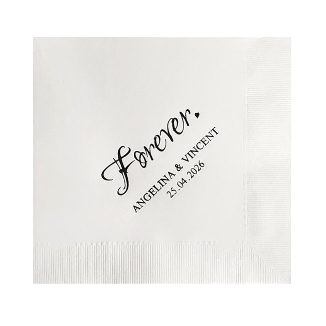 Serviettes de Table Personnalisées Forever x50 39.50 € Choix Couleur Serviette Choix Couleur Impression Previous Next Disponibilité En stock Expédié sous 30 j Délai livraison 48h Qualité produit Qualité impression Avis clients Aucun avis Pour donner votre avis sur ce produit, vous devez dejà avoir commandé ce produit. Les informations sur le recueil de nos avis sont disponibles : ici. Pour vérification, veuillez saisir votre n° de commande et votre code postal : N° commande : Code Postal : Note de 1 à 5 : 5 étoiles 4 étoiles 3 étoiles 2 étoiles 1 étoile Tapez ici votre commentaire sur ce produit. Valider Serviettes Blanc Bordeaux Corail Gris Gris Foncé Ivoire Marine Noir Parme Rose Rouge Turquoise Violet Motif Forever Impression Argent Blanc Bleu Métallisé Chocolat Métallisé Doré Fuchsia Métallisé Irisé Noir Rose Gold Métallisé Rouge Métallisé Turquoise Métallisé Vert Métallisé Violet Métallisé Prénoms à imprimer Date à imprimer Quantité 1 2 3 4 5 6 7 8 9 10 11 12 13 14 15 16 17 18 19 20 21 22 23 24 25 26 27 28 29 30 31 32 33 34 35 36 37 38 39 40 41 42 43 44 45 46 47 48 49 50 51 52 53 54 55 56 57 58 59 60 61 62 63 64 65 66 67 68 69 70 71 72 73 74 75 76 77 78 79 80 81 82 83 84 85 86 87 88 89 90 91 92 93 94 95 96 97 98 99 100 101 102 103 104 105 106 107 108 109 110 111 112 113 114 115 116 117 118 119 120 121 122 123 124 125 126 127 128 129 130 131 132 133 134 135 136 137 138 139 140 141 142 143 144 145 146 147 148 149 150 151 152 153 154 155 156 157 158 159 160 161 162 163 164 165 166 167 168 169 170 171 172 173 174 175 176 177 178 179 180 181 182 183 184 185 186 187 188 189 190 191 192 193 194 195 196 197 198 199 200 Commander - Ref : S-9875-4ever Sont imprimés sur les serviettes de table : - Impression : Forever. - Les prénoms des Mariés et la date du mariage. - Papier triple épaisseur. - Dimension pliée : 16.5 x 16.5 cm. - Dimension ouverte : 33 x 33 cm. - Attention ! Nous ne pouvons pas imprimer les caractères avec accents type : é ; è ; à ; ô etc... ainsi que le symbole " / ". Impressionnez vos invités avec nos superbes serviettes avec prénoms Forever pour votre Mariage ! Ces serviettes symboliseront votre Amour pour toujours.Nous vous proposons un large choix de coloris de serviettes et d'impression pour personnaliser vos serviettes pour le plus beau jour de votre vie. Si vous commandez d'autres articles sur notre site, ce produit décalera la livraison de votre commande : votre commande sera expédiée dès la disponibilité des serviettes.